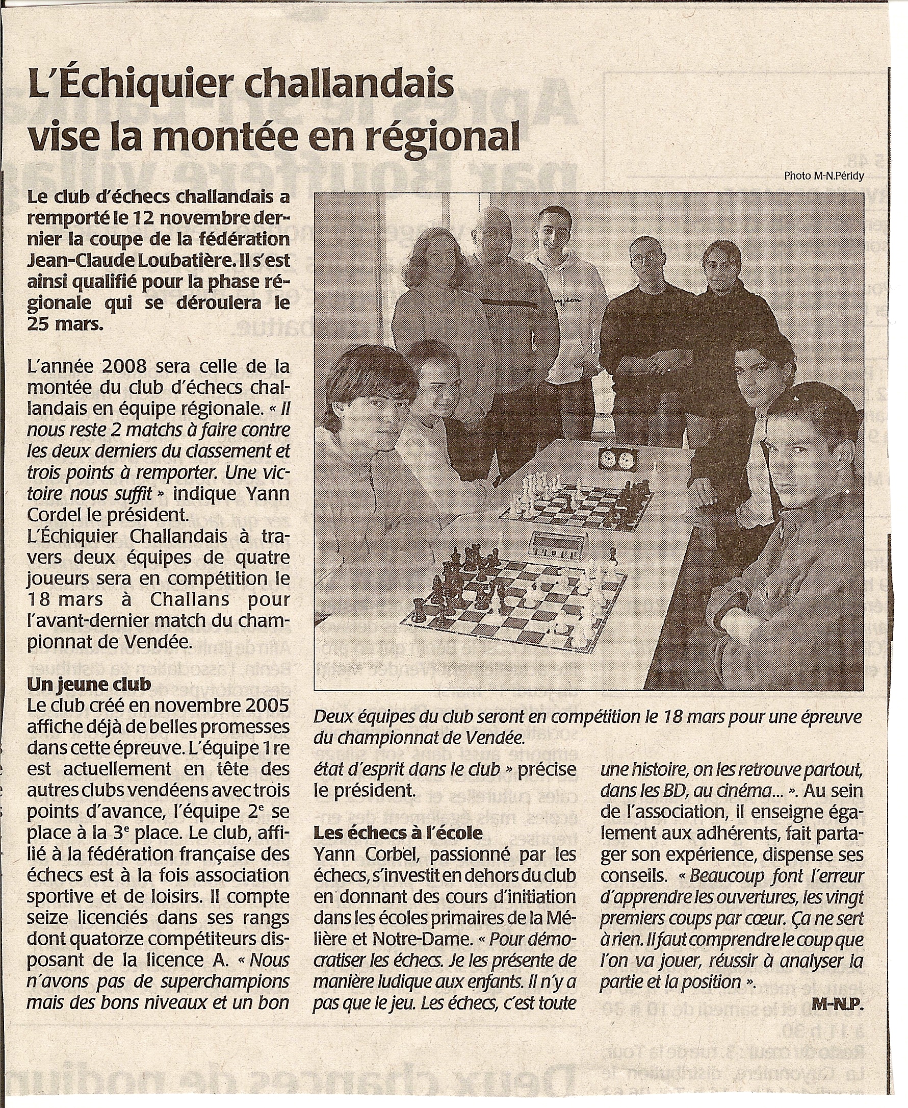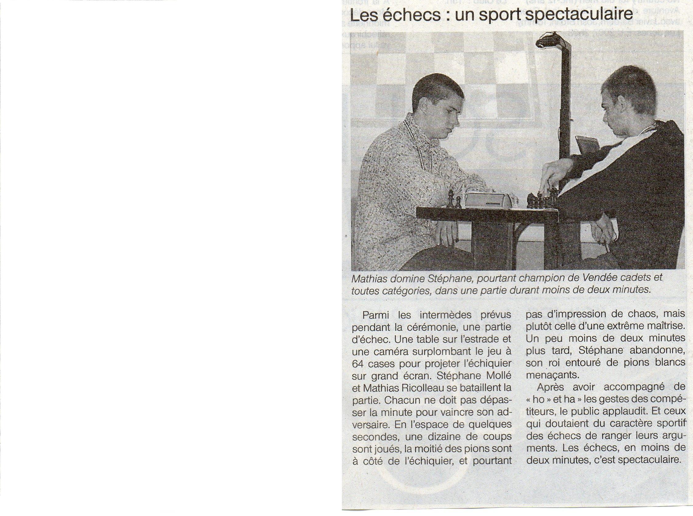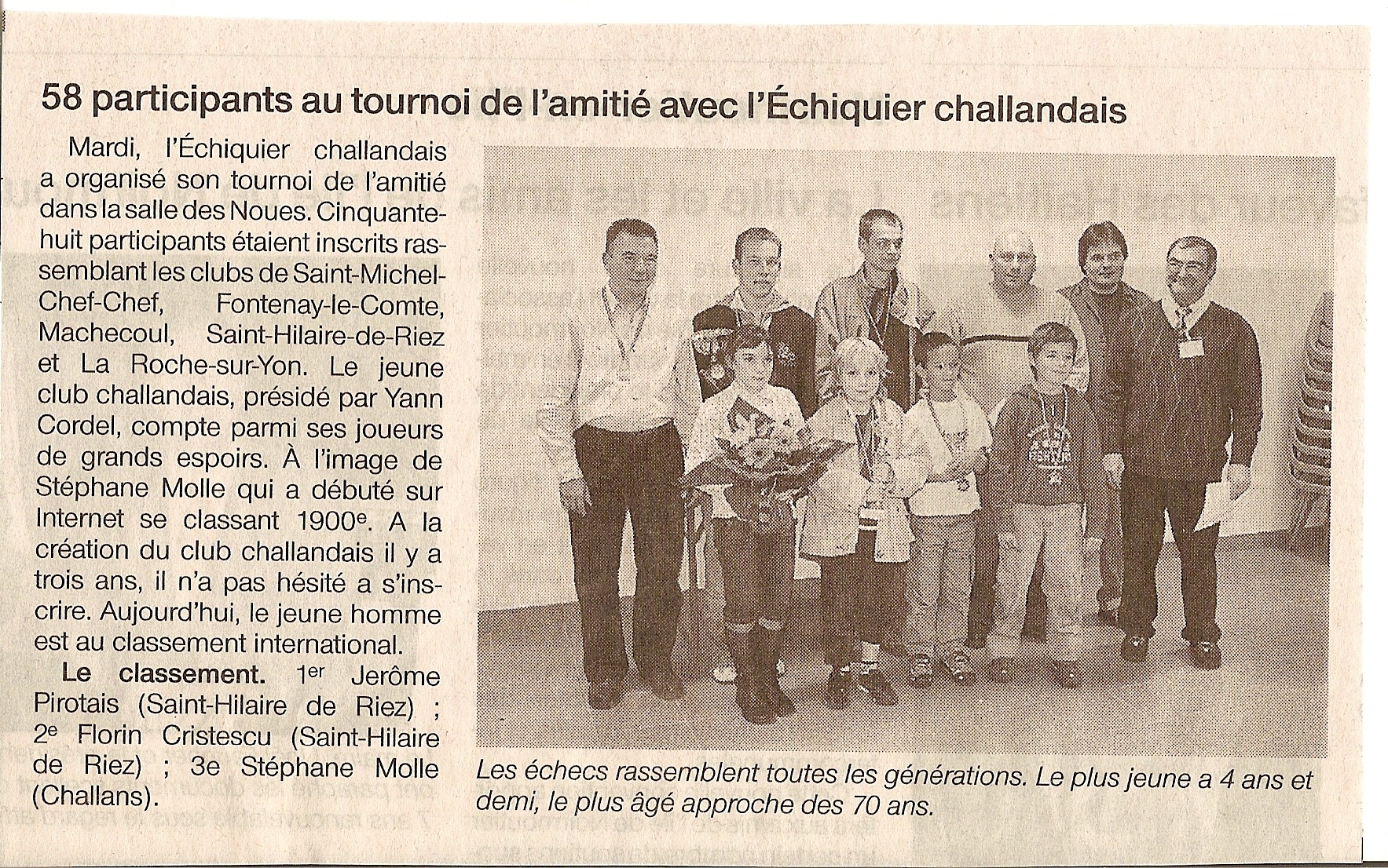 Ouest France, novembre 2007 : Tournoi de Challans.