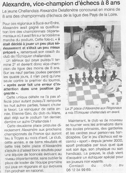 Ouest France, mars 2010 : Alexandre Delafenetre, vice-champion régional jeune.