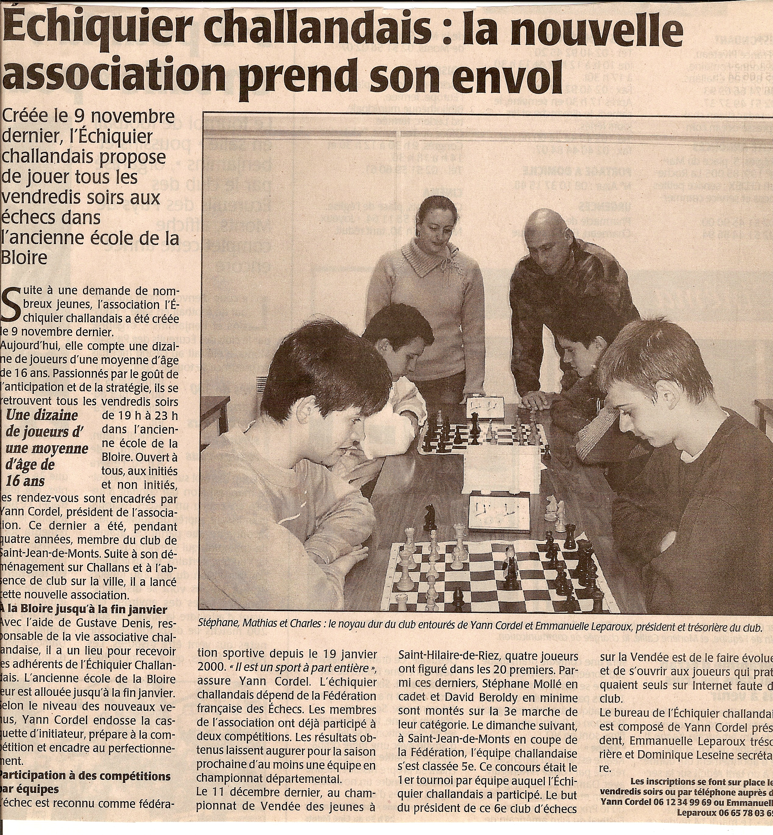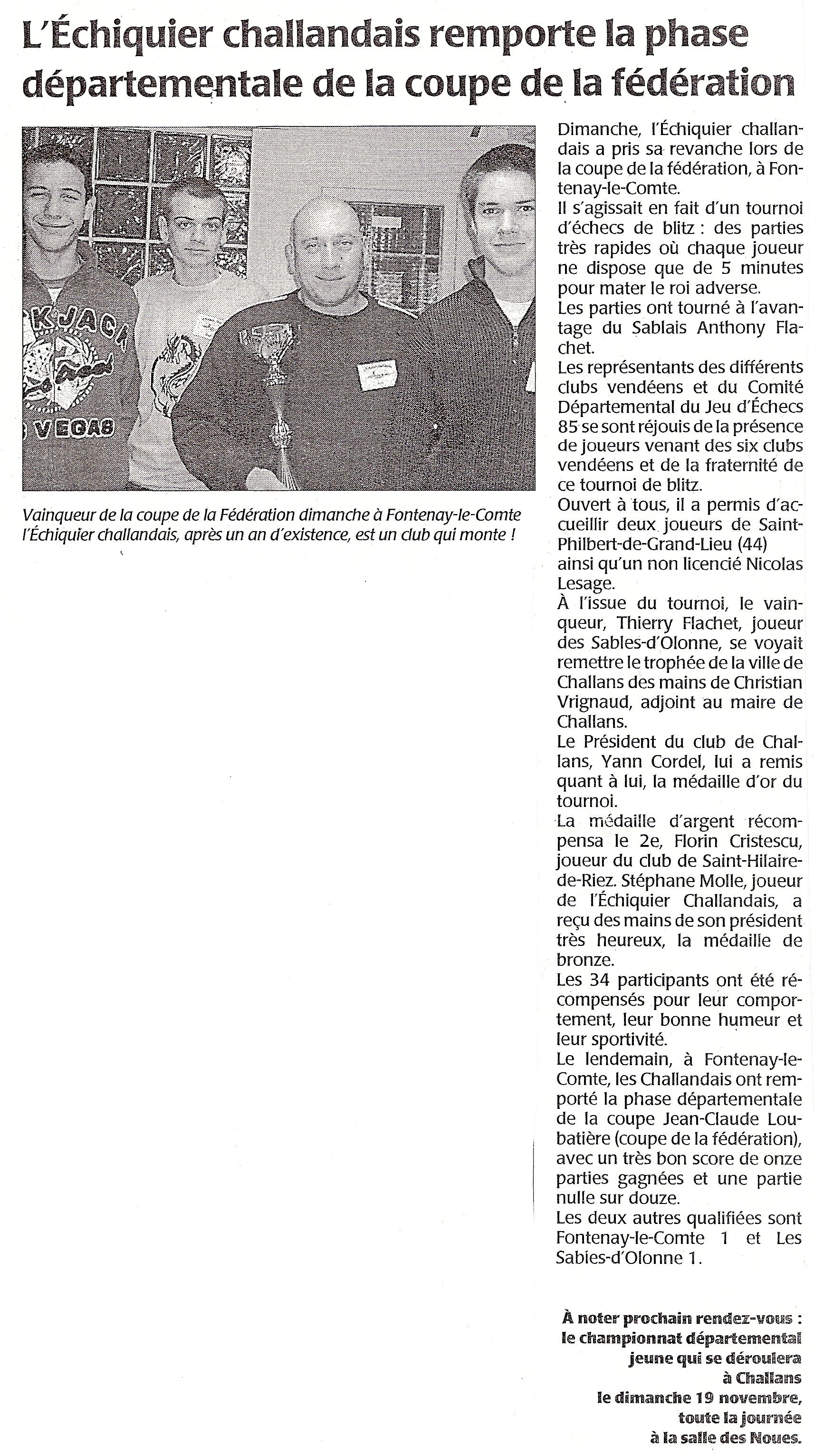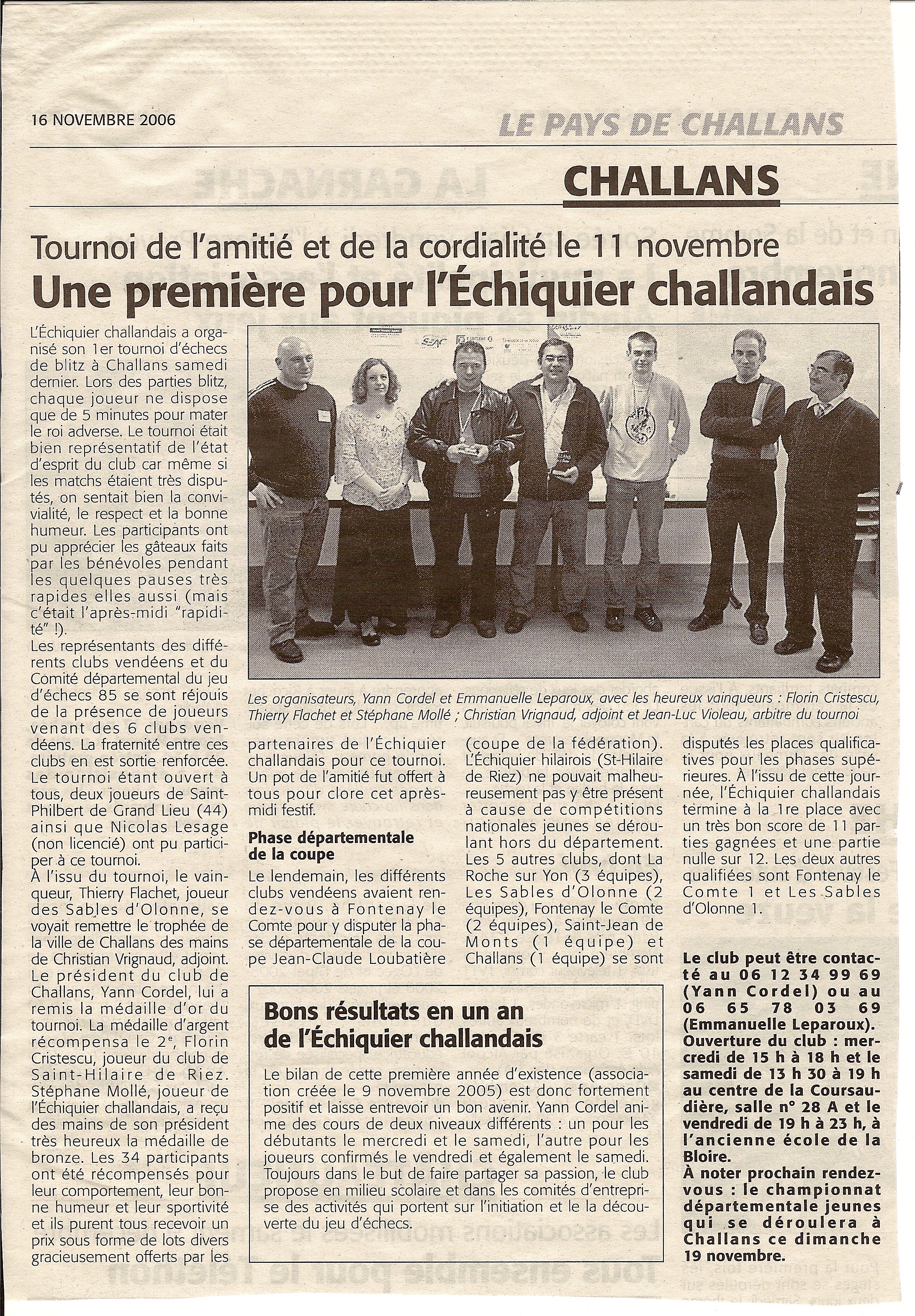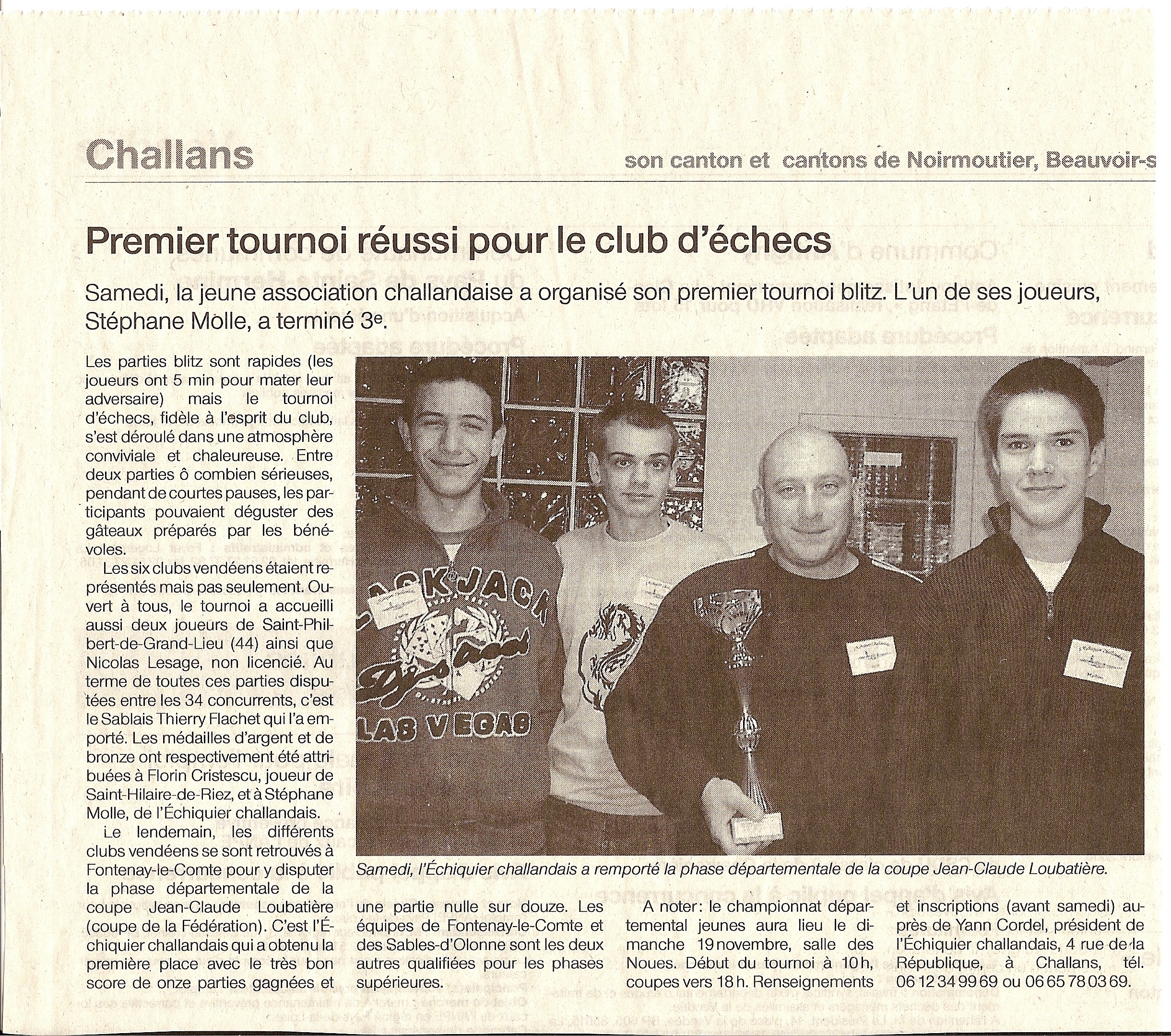 Ouest France, novembre 20006 : 1er tournoi de Challans et Coupe Loubatière.