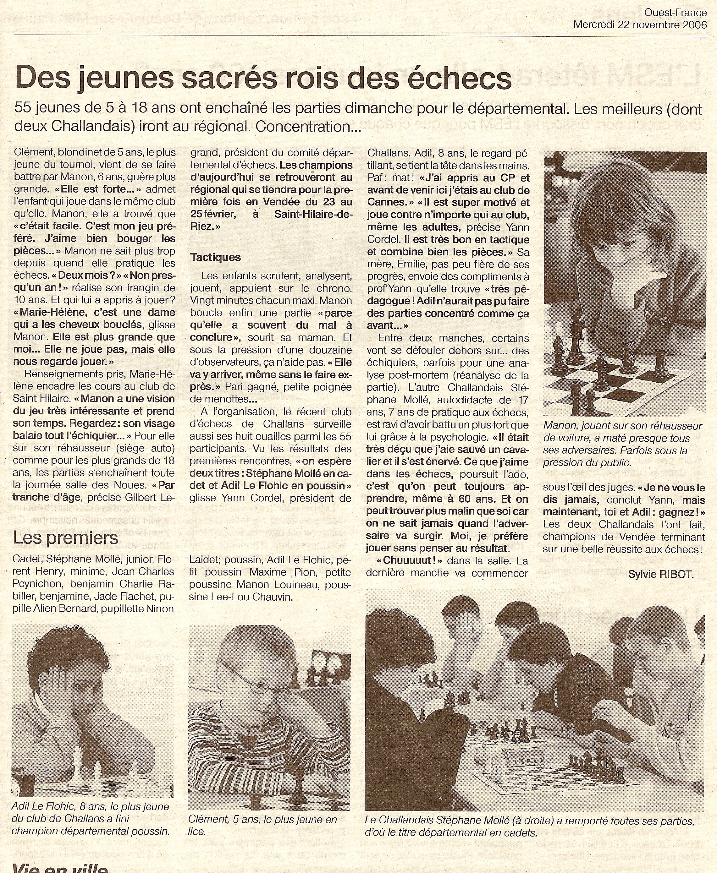Ouest France, 22/11/2006 : Championnat de Vendée jeunes à Challans.